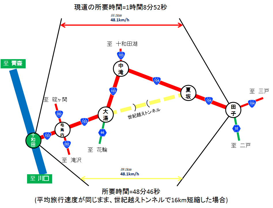 ¥Ç¡¼¥ê¡¼ÅìË̤ε»ö¤Ë¤è¤ì¤Ð¡¢¡ÖÀ¤µª±Û¤¨¥È¥ó¥Í¥ë¡×¤¬³«Ä̤¹¤ì¤ÐÅÄ»ÒÄ®²Æºä¤È¼¯³Ñ»ÔÂçÅò´Ö¤Ï16.7km(¸½¹Ô¤ÎÌó16km¼åû½Ì)¤È¤Ê¤ê¡¢½êÍ×»þ´Ö¤â46ʬ¤Ë¤Ê¤ë¤È¤¤¤¦¡£