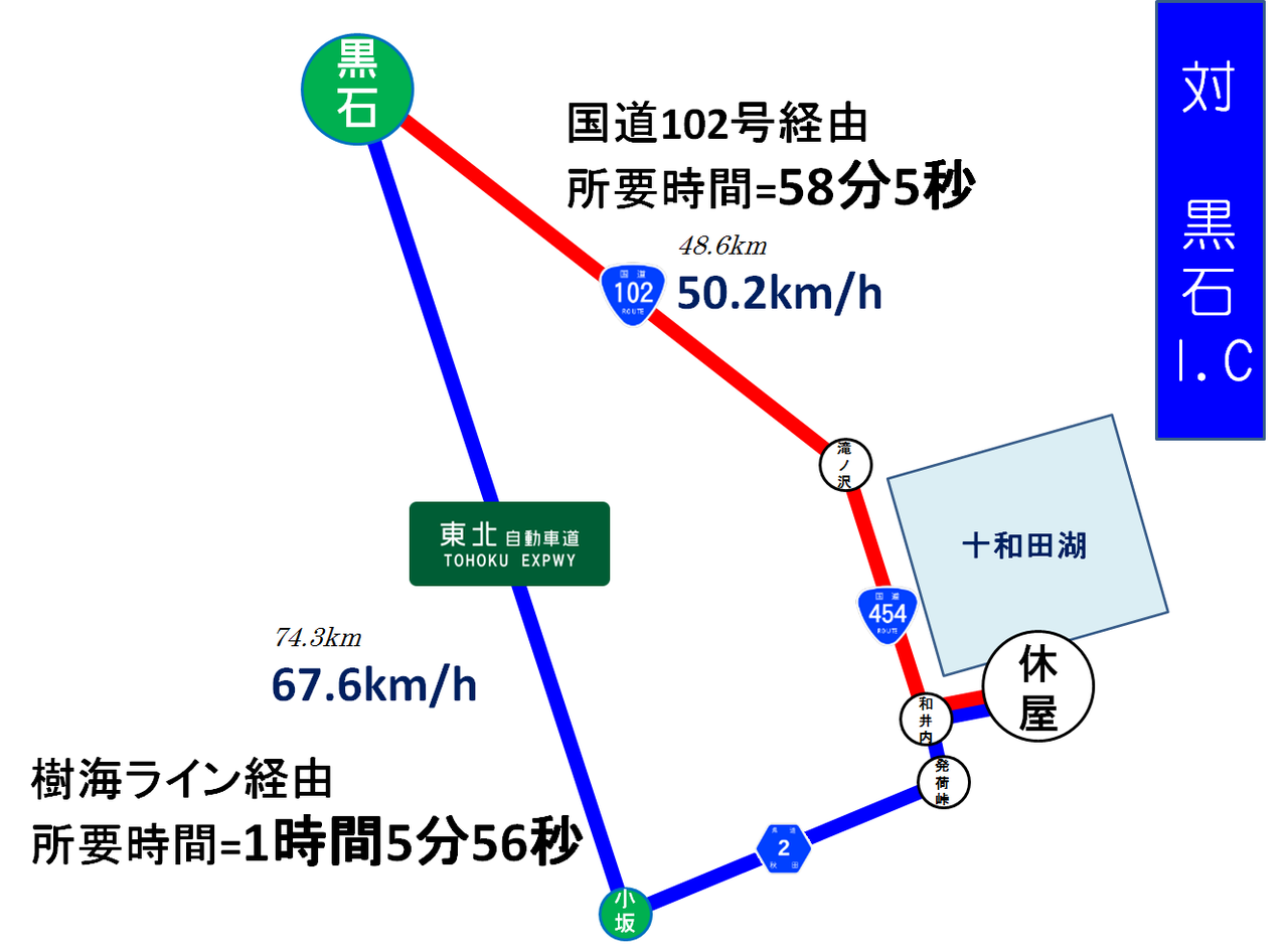 Åßµ¨¤Ç¤Ï¤Ê¤¯¡¢ÈóÀÑÀã´ü¤Î¥Ç¡¼¥¿¤Ë¤Ê¤ë¤±¤ì¤É¡¢½½ÏÂÅĸеٲ°¤«¤é¡¢¹õÀÐIC¤Þ¤Ç¤Î½êÍ×»þ´Ö¤ò¡¢¹ñÆ»102¹æ·Ðͳ¤È¼ù³¤¥é¥¤¥ó·Ðͳ¤ÇÈæ¤Ù¤Æ¤ß¤è¤¦¡£