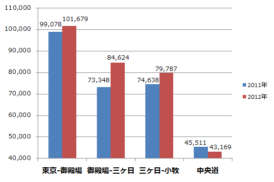 ¿·Åì̾¹â®¤Î³«Ä̤¬¤¢¤Ã¤¿2012ǯÅÙ¡¢ÀŲ¬¤ò·Ðͳ¤¹¤ëÅì̾¹â®¥ë¡¼¥È¤Ï¡¢Á°Ç¯¤ò¾å²ó¤ë¿ôÃͤò½Ð¤·¤¿¤Î¤Ç¤¢¤ë¡£