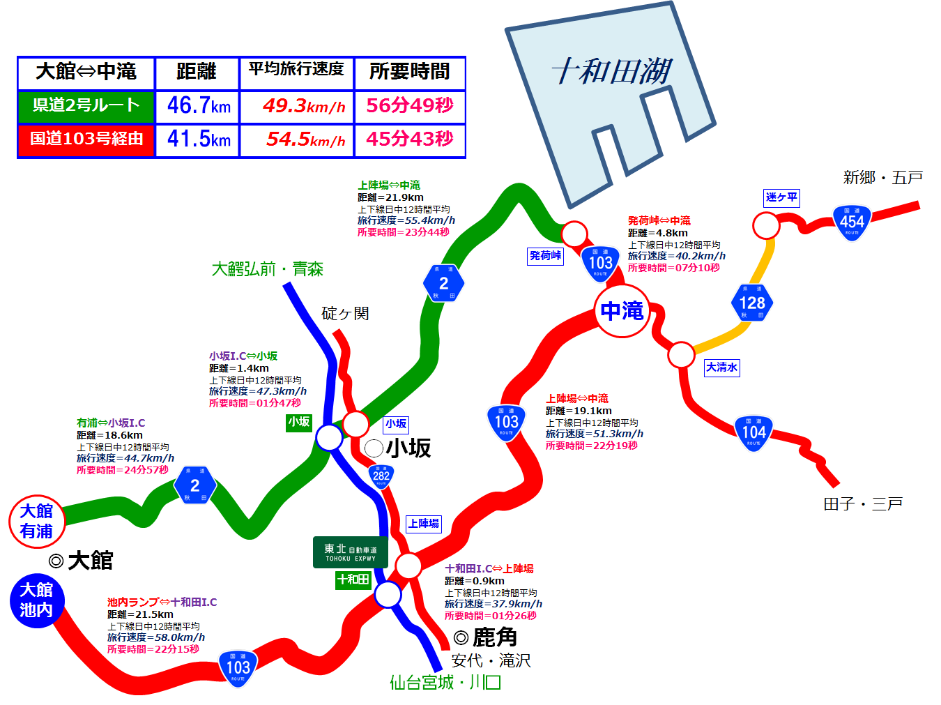 ¹ñÆ»103¹æ¤ÎÊý¤¬µ÷Î¥¤Ç5kmÄøÅÙû¤¯¡¢Ê¿¶Ñι¹Ô®ÅÙ¤Ç5km/h¤Û¤É®¤¤¤³¤È¤â¤¢¤ê¡¢½êÍ×»þ´Ö¤Ç11ʬ¤Îº¹¤Ë¤Ê¤Ã¤¿¡£