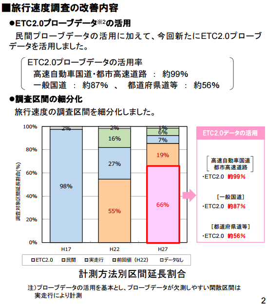 ²èÁü¤ª¤è¤Ó¥ê¥ó¥¯Àè¤Ë½ñ¤¤¤Æ¤¢¤ëÄ̤ê¤À¤¬¡¢Â®ÅÙÄ´ººÊýË¡¤Ë¤¢¤¿¤Ã¤ÆÊ¿À®27ǯ¤Î¥»¥ó¥µ¥¹¤Ç¤ÏETC2.0¥×¥í¡¼¥Ö¥Ç¡¼¥¿¤Î³ä¹ç¤¬66%¤Ë¤â㤷¤Æ¤ª¤ê¡¢Ì±´Ö¤Î¶¨ÎϤª¤è¤Ó¹ñ¸ò¾Ê¤Î¥×¥í¡¼¥Ö¥«¡¼¤Ë¤è¤ë¼ÂÁö¹ÔÄ´ºº¤Ë¤è¤ëÈæÎ¨¤¬80~98¡ó¤Ë¤â㤷¤Æ¤¤¤¿Á°²ó¤ª¤è¤ÓÁ°¡¹²ó¤Þ¤Ç¤È¤ÏÄ´ººÊýË¡¤¬Â礤¯ÊѤï¤Ã¤¿¤³¤È¤¬µó¤²¤é¤ì¤ë¡£