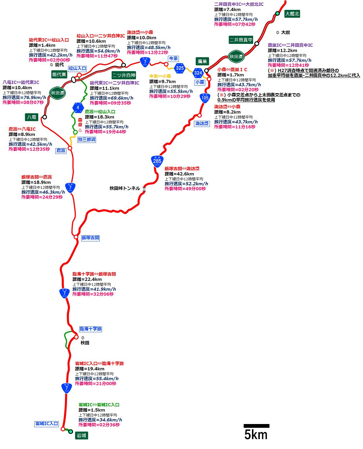 ¤´Í÷¤ÎÄ̤ê¤Ç¡¢´ä¾ëIC¢ÎÂç´ÛËÌIC¤Î°ìÈÌÆ»(²¼Æ»¡¢ÌµÎÁ¹â®)ºÇ®¥ë¡¼¥È¤Ï¡¢¹ñÆ»7¹æ¤È¹ñÆ»285¹æ¤È¹ñÆ»105¹æ¤È½©ÅÄÆ»¡¡ÂëÁã¡ÝÂç´ÛË̤òÁö¤ê·Ñ¤°¥ë¡¼¥È¤Ç¡¢µ÷Î¥=115.4km¡¢Ê¿¶Ñι¹Ô®ÅÙ=50.7km/h¡¢½êÍ×»þ´Ö=2»þ´Ö16ʬ34ÉᢤȤ¤¤¦¤È¤³¤í¤Î¤è¤¦¤À¡£