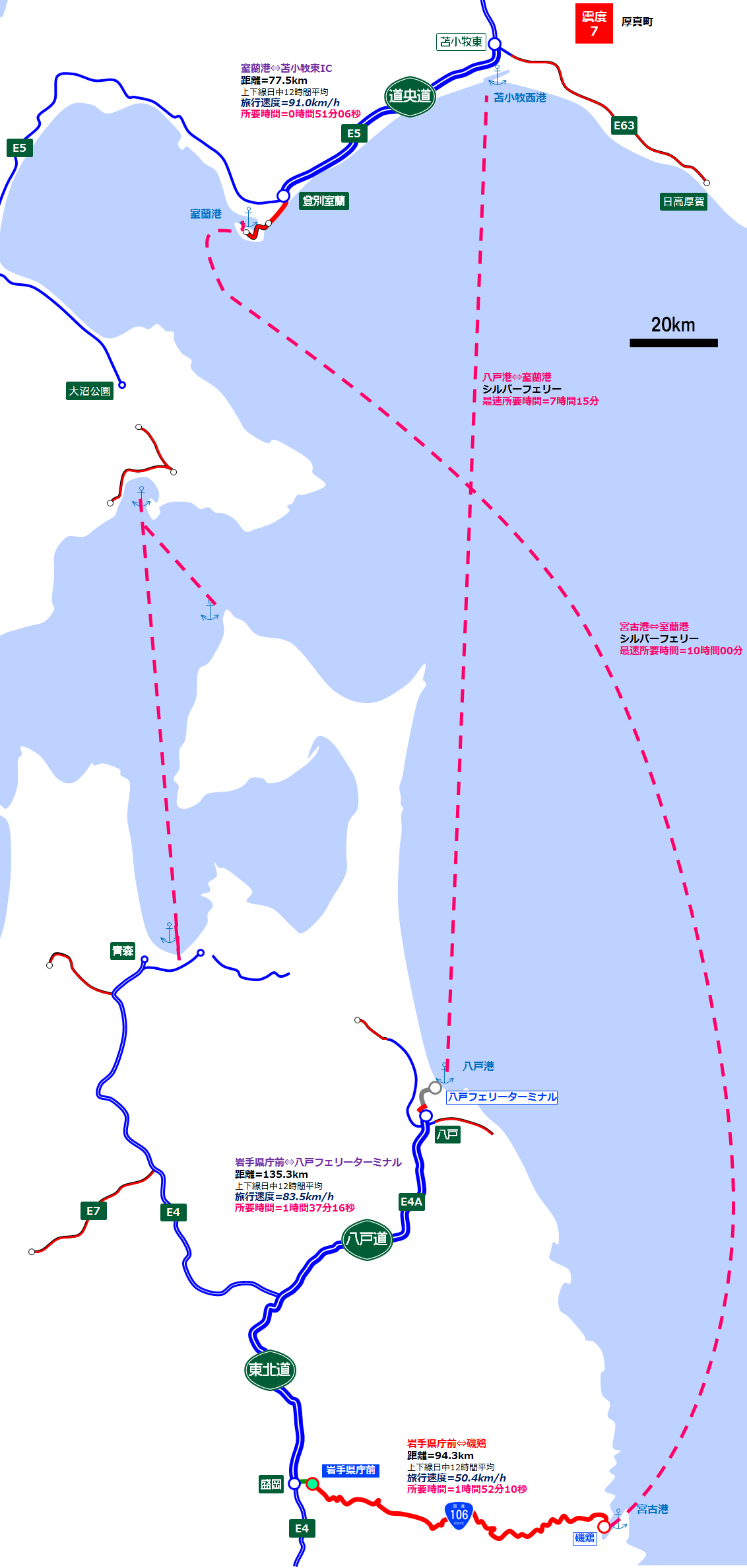 °ìÉô¡¢Æ»Ï©¸òÄÌ¥»¥ó¥µ¥¹Âоݳ°¤ÎȬ¸Í»ÔÆ»¤äµÜ¸Å»ÔÆ»¤â·×»»¤Ë»ÈÍѤ·¤¿¤Î¤Ç¿ä·×ÃͤǤϤ¢¤ë¤¬¡¢Ê¿À®27ǯƻϩ¸òÄÌ¥»¥ó¥µ¥¹¤ÎÊ¿¶Ñι¹Ô®ÅÙ¤«¤é»»½Ð¤·¤¿·ë²Ì¡¢À¹²¬¤«¤é¤âȬ¸Í¹ÁÍøÍѤÎÊý¤¬µÜ¸Å¹ÁÍøÍѤè¤êÆÑ¾®ËÒ¤ËÌó4»þ´Ö¤âÁáÃå²Äǽ¤Ê¤Î¤À¡£