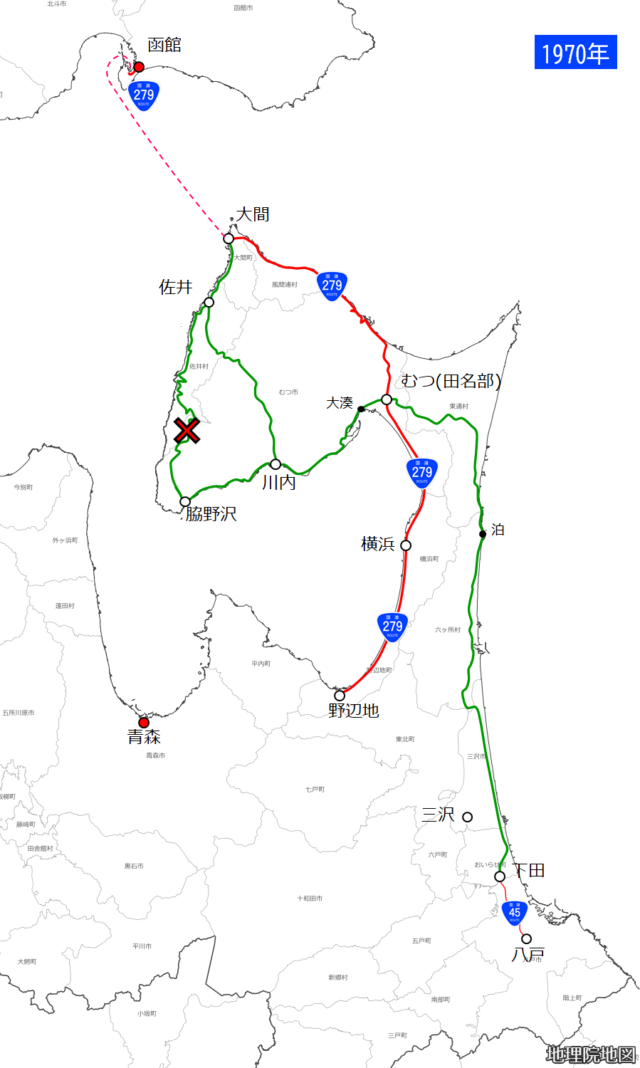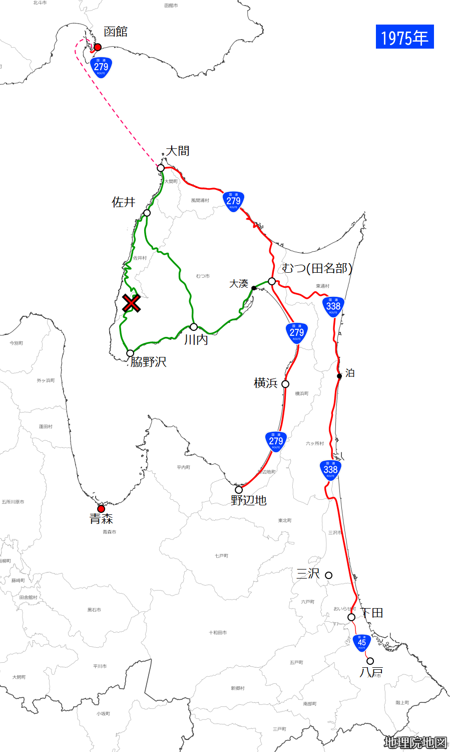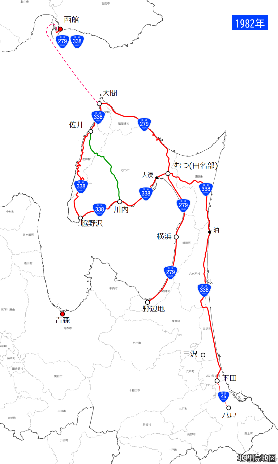 ¡¡»ÍÁ´Áí(1987ǯ)ºöÄê¤òÁ°¤Ë¹ñ¤È¸©¤Ç¤ÎÏ䷹礤¤¬¤â¤¿¤ì(¾¯¤Ê¤¯¤È¤â1986ǯ°ÊÁ°¤«¡©)¡¢ÀÄ¿¹¸©¤Ï²¼Ë̤ˤâ¹â®ƻϩ¤òÍ×˾¤·¤¿¤¬¡¢¹ñ¤«¤é¤Ï¹ñÆ»279¹æ¤È¹ñÆ»338¹æ¤òÄ̤·¤¿¤Ð¤«¤ê¤Ç¤â¤¦°ìÏ©Àþ¤Ï̵Íý¤À¤È¤¤¤¦²óÅú¤¬¤µ¤ì¤¿¤Î¤Ç¤¢¤ë¡£