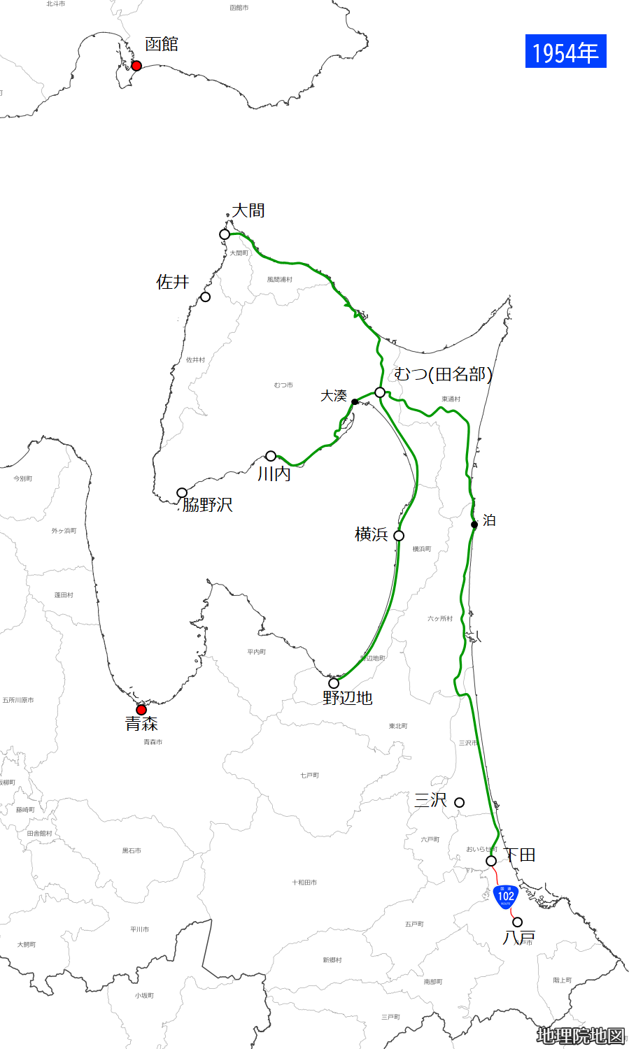 ¡¡²¼Ë̤ȤÏľÀÜ´Ø·¸¤Ê¤¤¤¬¡¢È¬¸ÍÅÄ̾ÉôÀþ¤Î°ìÉô¤È½ÅÊ£¤·¤Æ¤¤¤¿È¬¸Í¡Ý²¼ÅĴ֤ιñÆ»102¹æ¤Ï1963(¾¼ÏÂ38)ǯ¤Ë·úÀß¾Êľ³í¤Î¹ñÆ»45¹æ¤Ë¾º³Ê¤·¤Æ¤¤¤ë¡£
