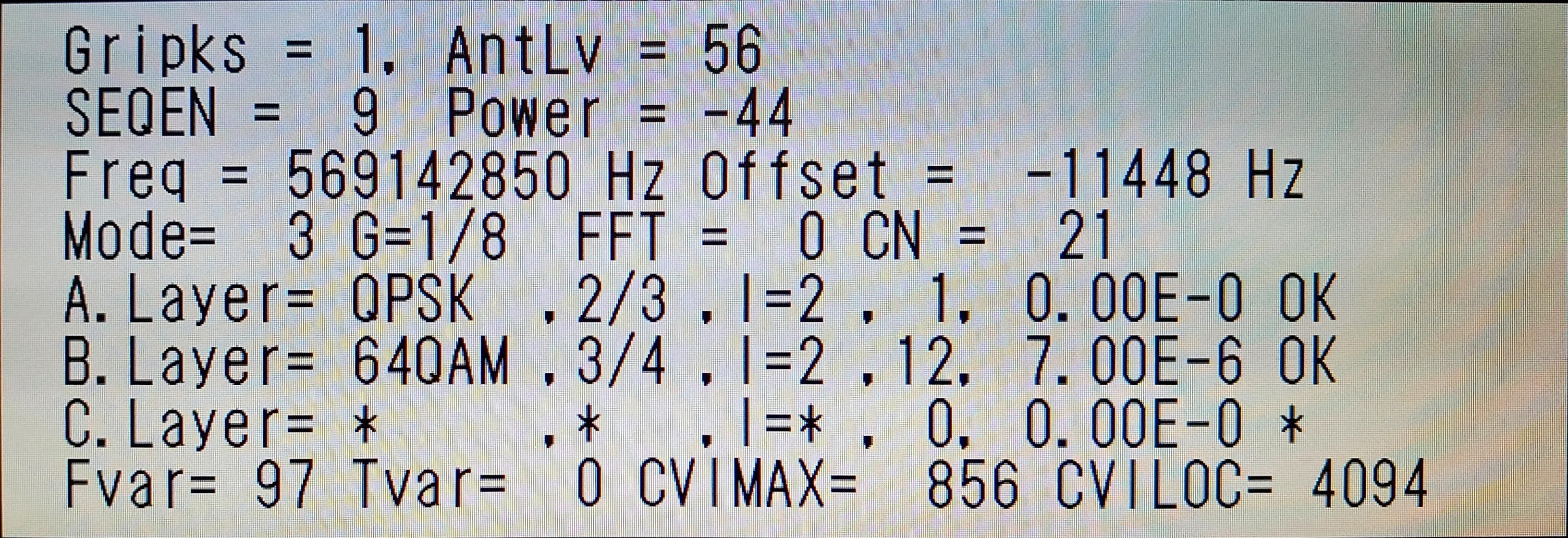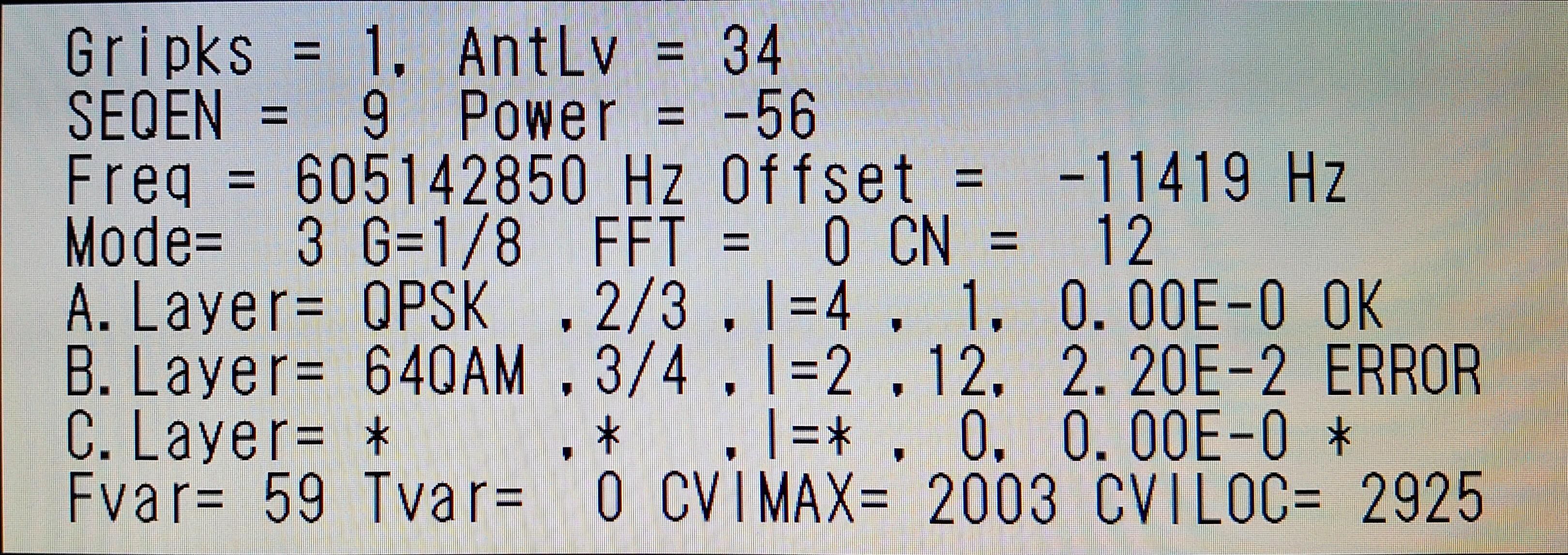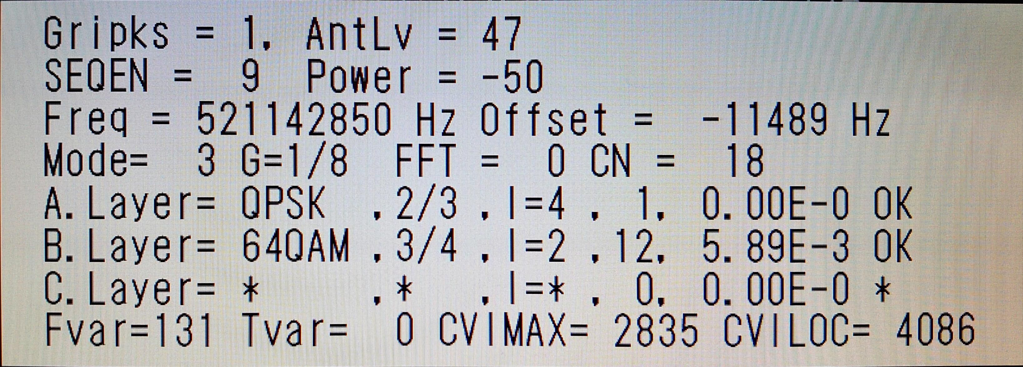 ¡¡C/N=12dB¤È¤¤¤Ä¤â¤è¤ê°¤¤¡£POWER=-56dBm¡¢E-2(100¥Ó¥Ã¥È¤¢¤¿¤ê2.2¤Î¥¨¥é¡¼)¤Ç¡¢BER¤Ï¤¤¤Ä¤âÄ̤ꡣÀã¤Î°Å·¸õ¤Ç¼å¤¯¤Ê¤ë¤Î¤Ï¤³¤Á¤é¤âƱ¤¸¤«¡£