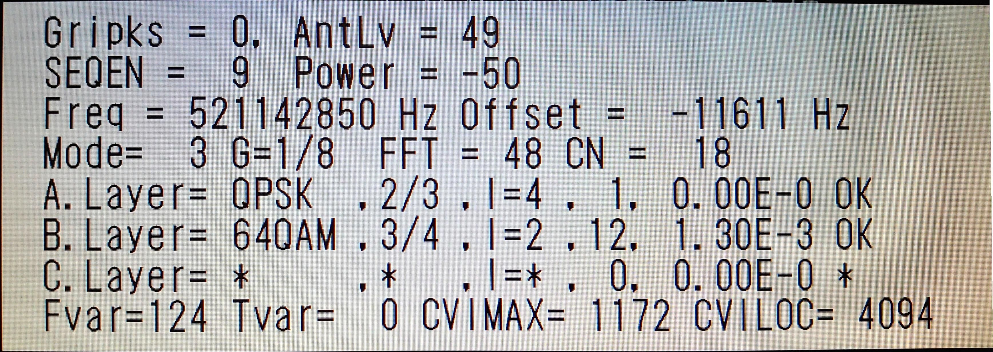 ¡¡C/N=17dB¡¢POWER=-60dBm¡¢E-4(10Ëü¥Ó¥Ã¥È¤¢¤¿¤ê3.44¤Î¥¨¥é¡¼)¤Ç¡¢¤¤¤Ä¤âÍ¥½¨¤Ê´¶¤¸¤À¤¬º£²ó¤ÏAKTʤËÍî¤Á¹þ¤ó¤Ç¤¤¤ë¡£
