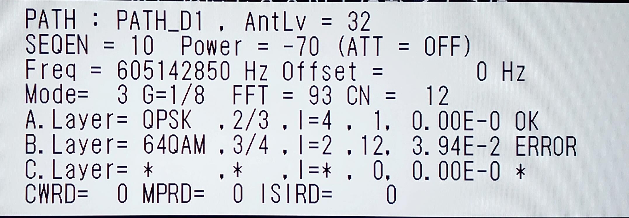 ¡¡C/N=12dB¤ÈÁ°²óƱÍͺÇÄãµÏ¿¡£POWER=-70dBm¡¢E-2(100¥Ó¥Ã¥È¤¢¤¿¤ê3.94¤Î¥¨¥é¡¼)¡£ºÇ¶á¤ÏÃΤé¤Ê¤¤¤¦¤Á¤Ë¤Ò¤Ã¤½¤ê¤ÈÉüÄ´¤¹¤ë¤³¤È¤â̵¤¤¤é¤·¤¯¡¢EPG¤«¤éÈÖÁȾðÊ󤬾ÃÌǤ·¤Æ¤·¤Þ¤Ã¤Æ¤¤¤¿¡£