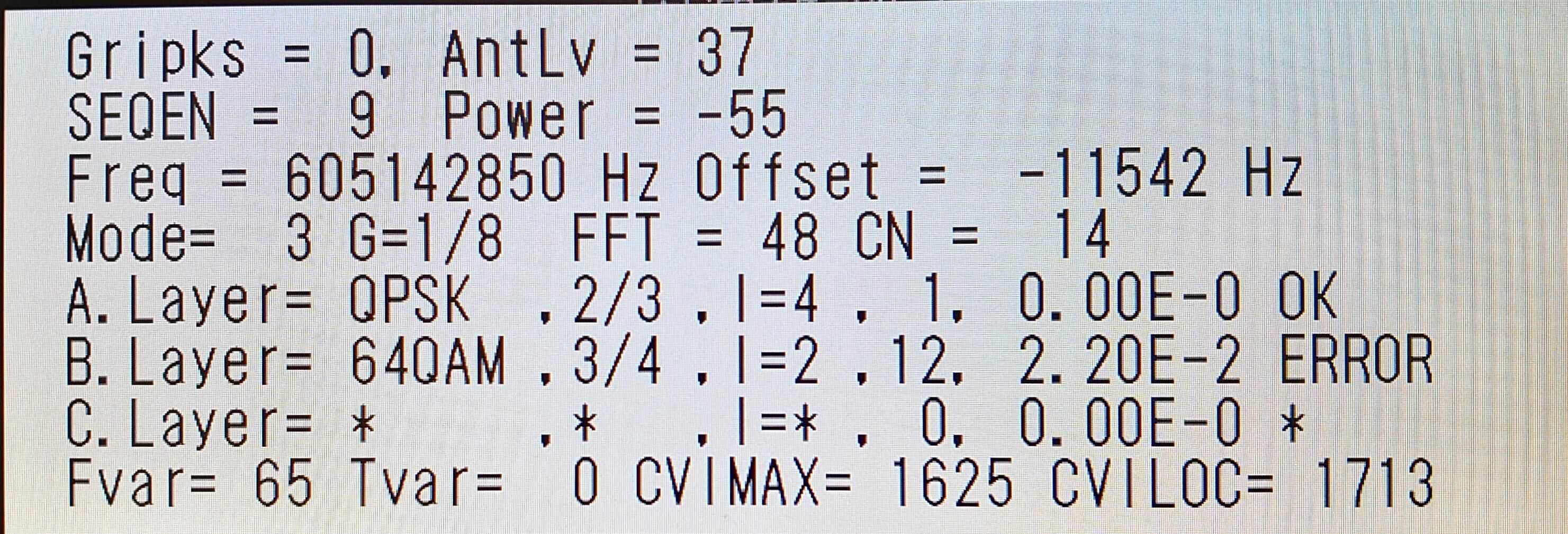 ¡¡C/N=14dB¡¢BER=E2(2.20)¡¢POWER=-55dBm¤ÈC/N¤¬Á°Æü¤è¤êÎɤ¤¡£