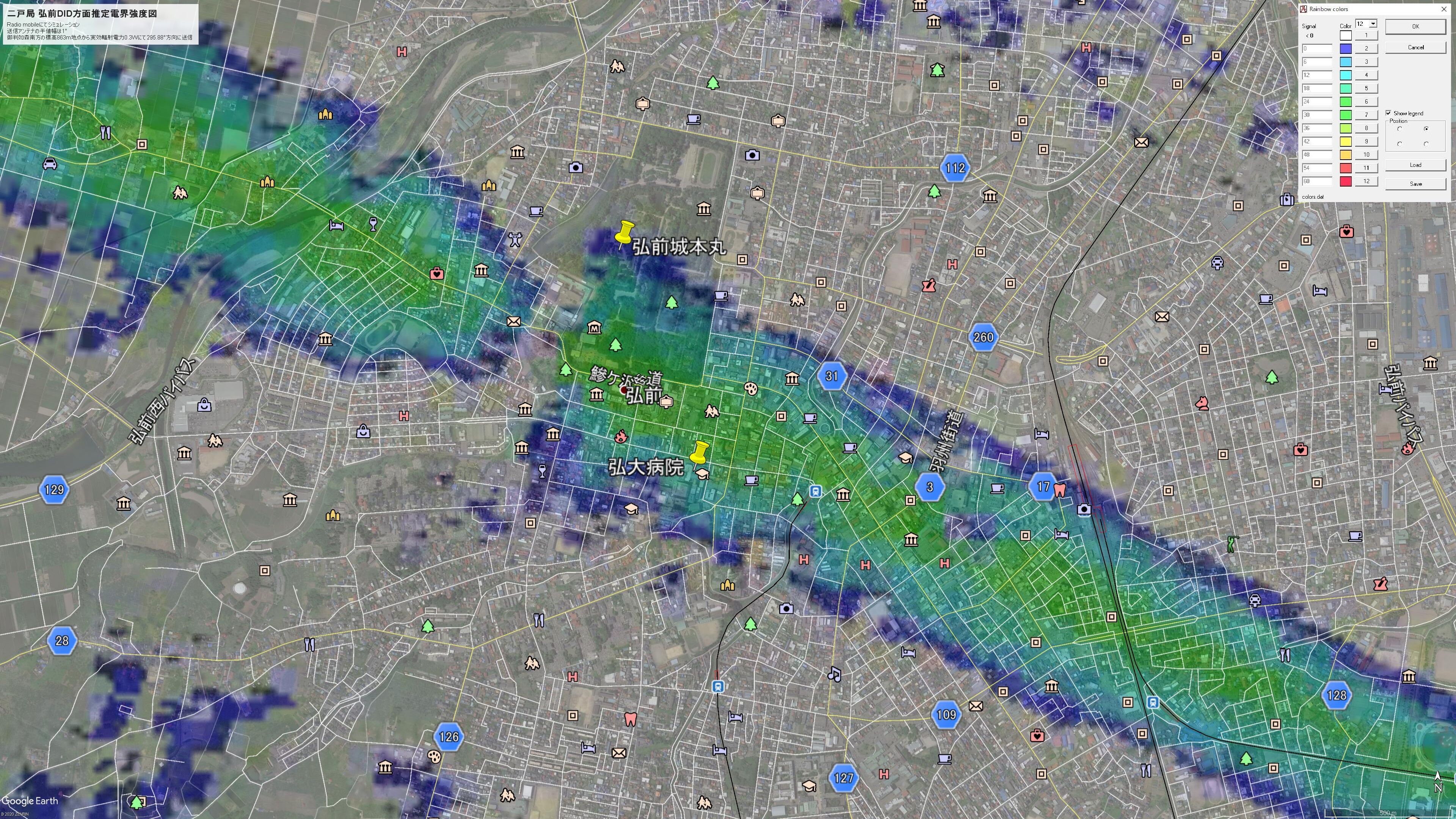 ¡¡Ë̳¤Æ»Ê¡ÅçÄ®¤ÎÛØÁҳ٤ˤ¢¤ëÅÏÅçÊ¡Åç¶É¤«¤é¤ß¤ÆÊ¡ÅçÄ®Ãæ¿´Éô¤¬¤À¤¤¤¿¤¤170¡ëÊý¸þ¤Ê¤Î¤Ç¡¢É¸¹â400m¤Ç170¡ëÊý¸þ¤ËERP=8W¤Ç¥·¥ß¥å¥ì¡¼¥·¥ç¥ó¤·¤Æ¤ß¤ë¡£