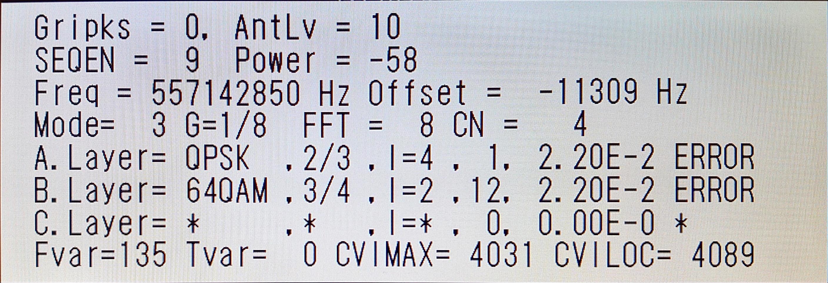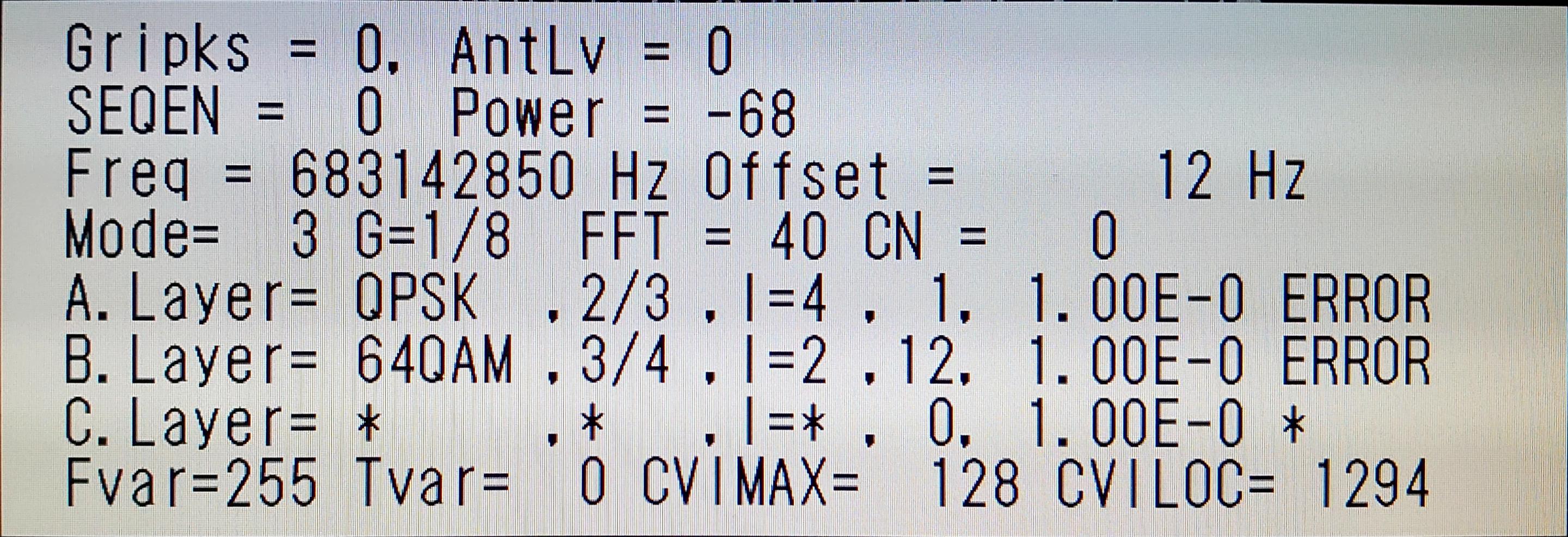 ¡¡C/N¤¬0¡¢¥¢¥ó¥Æ¥Ê¥ì¥Ù¥ë¤â0¡¢POWER¤â-68dBm¤È¤Ï°¤¹¤®¤ë¡£