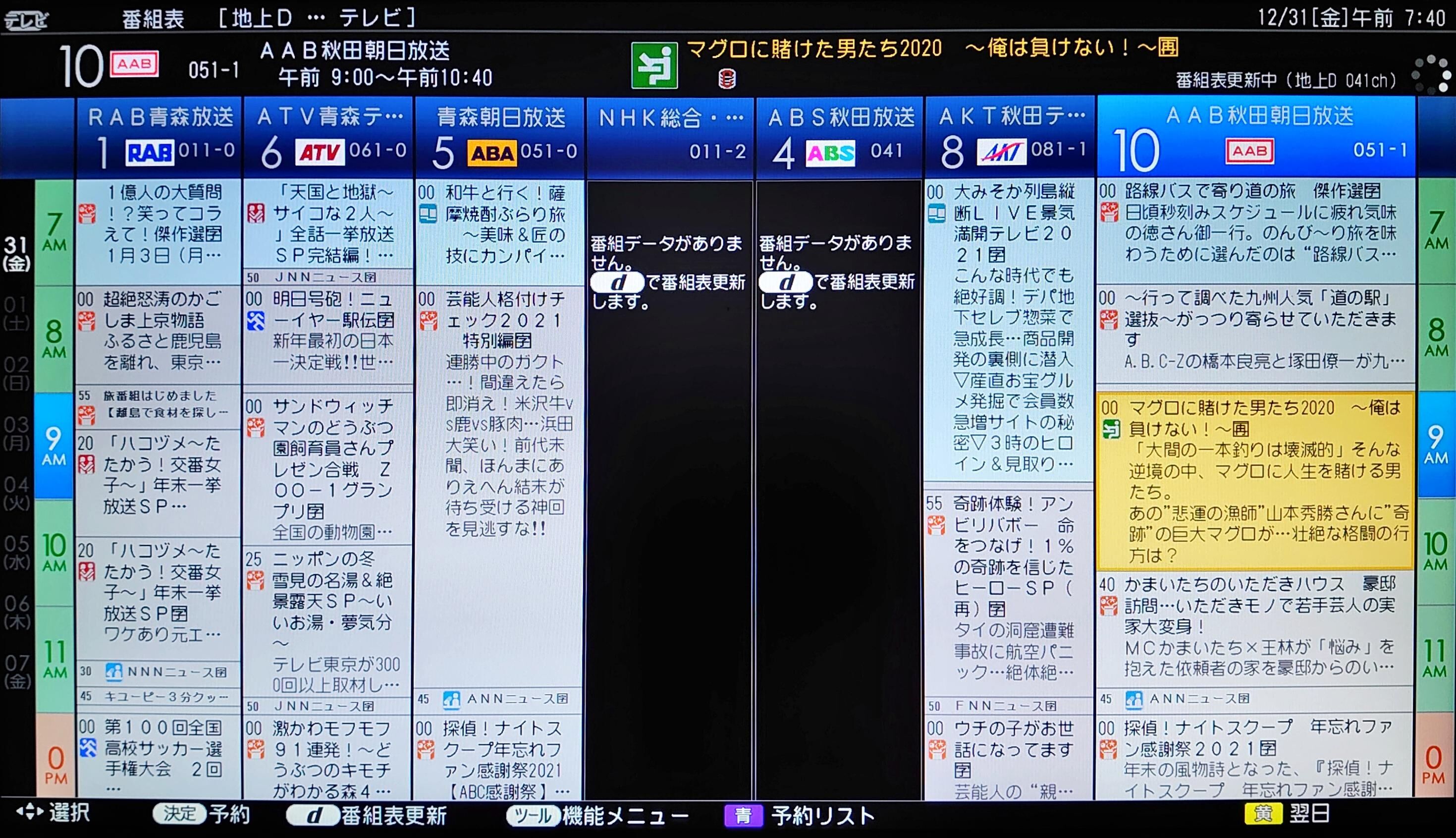 ¡¡¤µ¤Æ¡¢¾å¤Î²èÁü¤ÏÂç³¢Æü¤Î¸áÁ°¤ÎEPG²èÌ̤À¤¬¡¢½©ÅÄÄ«ÆüÊüÁ÷(AAB)¤Ë¡Ö¥Þ¥°¥í¤ËÅÒ¤±¤¿Ãˤ¿¤Á2020[ºÆ]¡×¤¬¡£