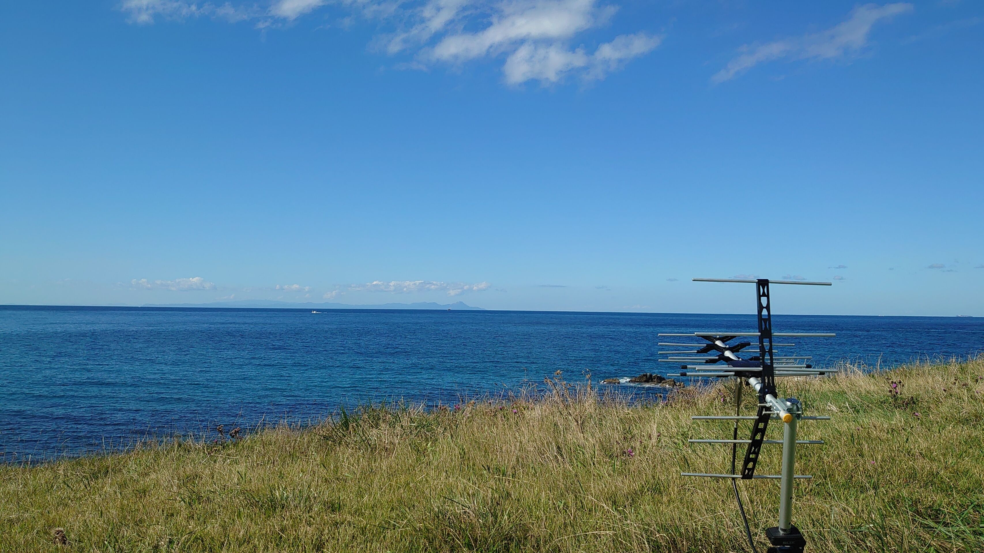 ¡¡¿¬²°ºê¤ÎÃó¼Ö¾ì¼þÊÕ¤Îɸ¹â¤ÏÃÏÍý±¡ÃϿޤˤè¤ì¤ÐÌó15m¤Ç¤¢¤ë¡£»°µÓ¤Ç¥Þ¥¹¥È¤ò·Ç¤²¤Æ2m¤ò²Ô¤¤¤Ç¼õ¿®¹â¤Ï17m¤È¤·¤Æ¡¢107.4km¤Î¸«Ä̤·¤ò²Ô¤°¤Ë¤Ï¬ÎÌ»³Â¦¤ÎÁ÷¿®¹â¤¬485m¤Ê¤±¤ì¤Ð¤Ê¤é¤Ê¤¤¡£