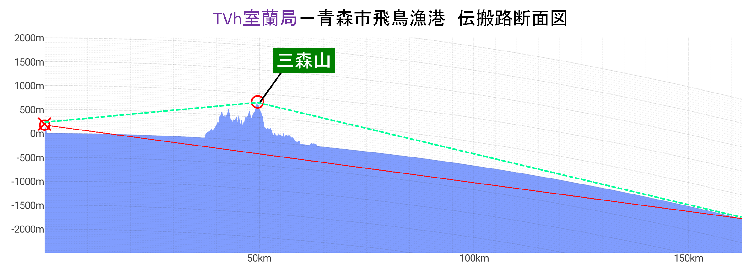 ¡¡»°¿¹»³¤«¤éÈôÄ»µù¹Á(¼õ¿®¹â=2.0m)¤Î¼Âµ÷Î¥¤Ï113.3km¤È¤Ê¤ë¤¬¡¢842m¤Î»°¿¹»³Äº¤¬²óÀÞÅÀ¤È¤·¤Æµ¡Ç½¤Ç¤¤ì¤ÐÅÅÇȤθ«Ä̤·µ÷Î¥¤¬Ìó125.4km¤Ë㤷¡¢¼Âµ÷Î¥¤è¤ê12km¤â¤Î;͵¤¬¤¢¤ë¡£
