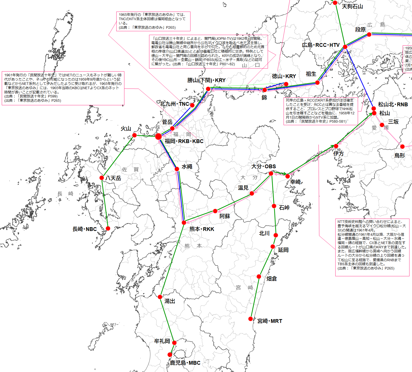 ¡¡°ìÊý¤Ç1964ǯ8·îËöÆü»þÅÀ¤Ç¡¢·§Ëܤˤϡ¢1961ǯ³«Ä̤λ͹ñ·Ðͳ²óÀþ(Âçºå¡Ý¹âÃΡÝÂçʬ¡Ý·§ËÜ¡ÝÊ¡²¬¡Ý¶Ó¡ÝÆÁ»³)¤âÆþ¤Ã¤Æ¤¤Æ¤¤¤¿¤Î¤Ç¡¢»³¸ýÊüÁ÷(KRY)¹Ô¤ÎCX¡¦NETº®ºß¤Î²óÀþ¤â¤¤Æ¤¤¤¿¡£