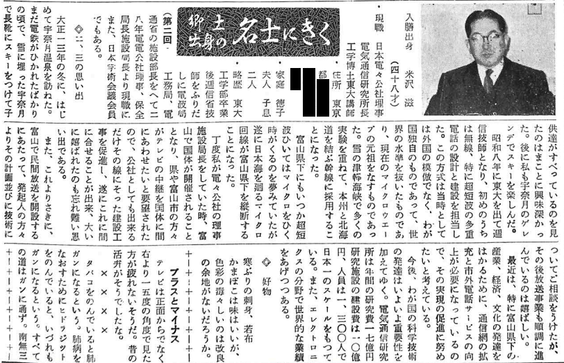 ¡¡¤·¤«¤·ÊÆß·¼¢¤âŸÊè¤Î¤¿¤á¡¢»Ò¶¡¤Îº¢¤ÏËèǯÉã¤ËÏ¢¤ì¤é¤ìÆþÁ±¤òˬ¤ì¤Æ¤¤¤Æ¡¢ÊÆß·²È¤ÎÊîÄó»û¤Ê¤É¼«¿È¤Î¥ë¡¼¥Ä¤Ë¿¨¤ì¤ÆÍ褿¤é¤·¤¤¡£ÍÄÃÕ±àÆþ±àÁ°¤ËÎ¥¤ì¤¿Ä¹Ì¤Ç¤Ï¤Ê¤¯¡¢½Ð¿ÈÃϤòÉÙ»³¸©¤È¤¹¤ë¤³¤È¤Ï¼«Á³¤Ê¤³¤È¤À¤Ã¤¿¤Î¤«¤â¤·¤ì¤Ê¤¤¡£ÊÆß·¼¢¤¬ÉÙ»³¸©½Ð¿È¤È̾¾è¤ë·Àµ¡¤È¤Ê¤Ã¤¿ÆþÁ±Ä®Ä¹¤Î¼ê»æ¤è¤ê3¤«·î¤Û¤ÉÁ°¡¢2·î15Æüȯ¹Ô¤Î¡ÖÆþÁ±Ä®Êó¡×¤Ë¡Ö¶¿ÅڽпȤÎ̾»Î¤Ëʹ¤¯¡×¤ÈÂꤹ¤ëÊÆß·¼¢¤Î´ó¹Æ¤¬¤¢¤ë¡£¤½¤ÎÃæ¤ÇÊÆß·¼¢¤Ï¡¢¡ÖÉÙ»³¸©²¼¤Ë¤â¤¤¤Ä¤«Ä¶Ã»ÇȤҤ¤¤Æ¤Ï¥Þ¥¤¥¯¥í¤ò¤Ò¤¯»þ¤¬¤¯¤ë¤Î¤òÌ´¸«¤Æ¤¤¤¿¤¬¡¢¿ë¤ËÆüËܳ¤¤ò²ö¤ë¥Þ¥¤¥¯¥í²óÀþ¤¬ÉÙ»³¸©²¼¤ò½ÄÃǤ¹¤ë¤³¤È¤Ë¤Ê¤Ã¤¿¡×¤È¤·¡¢1958(¾¼ÏÂ33)ǯ¤ÎÉÙ»³¹ñÂΤ˥ޥ¤¥¯¥í²óÀþ¤Î·úÀߤ¬´Ö¤Ë¹ç¤¤¡¢¸©¤äÉÙ»³»Ô¤Ë´ò¤Ð¤ì¤¿¤³¤È¤¬Ëº¤ìÆñ¤¤¤³¤È¤À¤È¡¢¶¿ÅÚ¤Î̾»Î¤È¤¤¤¦Î©¾ì¤Ç½Ò²û¤·¤Æ¤¤¤ë¡£ÆþÁ±Ä®Ä¹¤«¤é¼ê»æ¤ò¼õ¤±¼è¤ëÁ°¤«¤é¡¢¤É¤³¤«ÉÙ»³¸©½Ð¿È¤ò̾¾è¤ëµ¡²ñ¤â¤¢¤Ã¤¿¤Î¤«¤â¤·¤ì¤Ê¤¤¡£