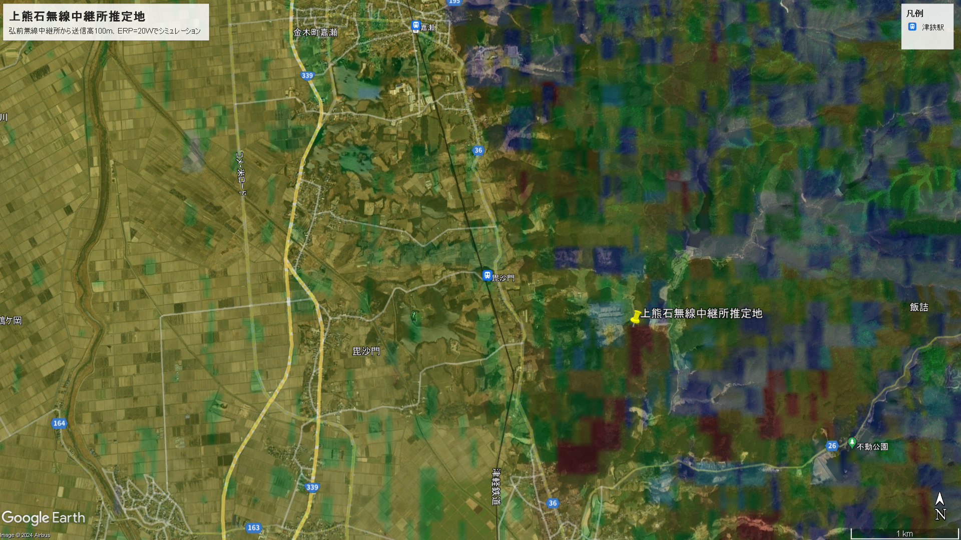 ¡¡·ë¶É¡¢¾å·§ÀÐ̵ÀþÃæ·Ñ½ê¤Î¥Ò¥ó¥È¤âº¯Àפ餷¤¤â¤Î¤â¸«¤Ä¤«¤é¤Ê¤¤¤Î¤Ç¡¢Radio mobile¤Ç¹°Á°ÌµÀþÃæ·Ñ½ê¤«¤éERP=20W¤Ç¥·¥ß¥å¥ì¡¼¥·¥ç¥ó¤·¤Æ¤ß¤ë¤³¤È¤Ë¤¹¤ë¤È¡¢Èӵͽ¸ÍîËÌÊý¤Î83.5m¹âÃϤ䡢¾å·§ÀкÇÅìü¤ÎÈûº»ÌçËÒ¾ì¤ÎÆîÅìü¤¬Îɹ¥¤Ê¼õ¿®Åų¦¶¯ÅÙ¤ÎÃÏÅÀ¤È¤·¤ÆÀÖ¤¯É⤫¤Ó¾å¤¬¤Ã¤Æ¤¤¿¡£