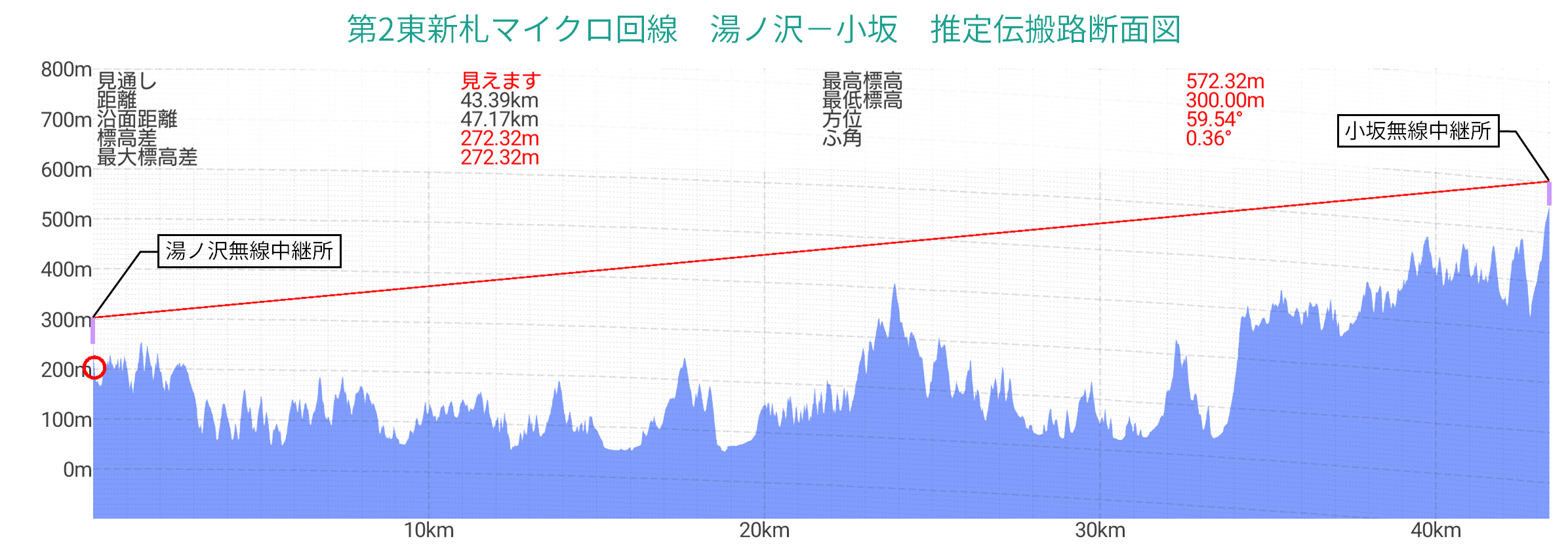¡¡¾Ü¤·¤¤°ÌÃÖ¤â¤ï¤«¤ë¤·(ɸ¹â¤ÏÌó200m)¡¢Åì±üÆüÊó¤Îµ»ö¤Ë125m¤È¤¤¤¦Å´Åã¹â¤Î¾ðÊó¤â¤¢¤ë¤Î¤Ç¡¢Radio mobile¤ÇÁ÷¿®¹â325m¡¢ERP=20W¤È¤·¤Æº£ÊÌ̵ÀþÃæ·Ñ½ê¤Î¥·¥ß¥å¥ì¡¼¥·¥ç¥ó¤â¤·¤Æ¤ß¤è¤¦¡£