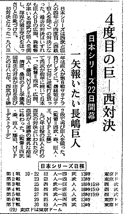 ¡¡ÆÉÇ䥸¥ã¥¤¥¢¥ó¥Ä(µð¿Í)¤ÈÀ¾Éð¥é¥¤¥ª¥ó¥º¤Ë¤è¤ëÆüËÜ¥·¥ê¡¼¥º¤Ï1994ǯ10·î22Æü¤«¤é10·î29Æü¤Þ¤Ç¤Î6À郎¹Ô¤ï¤ì¤¿¡£