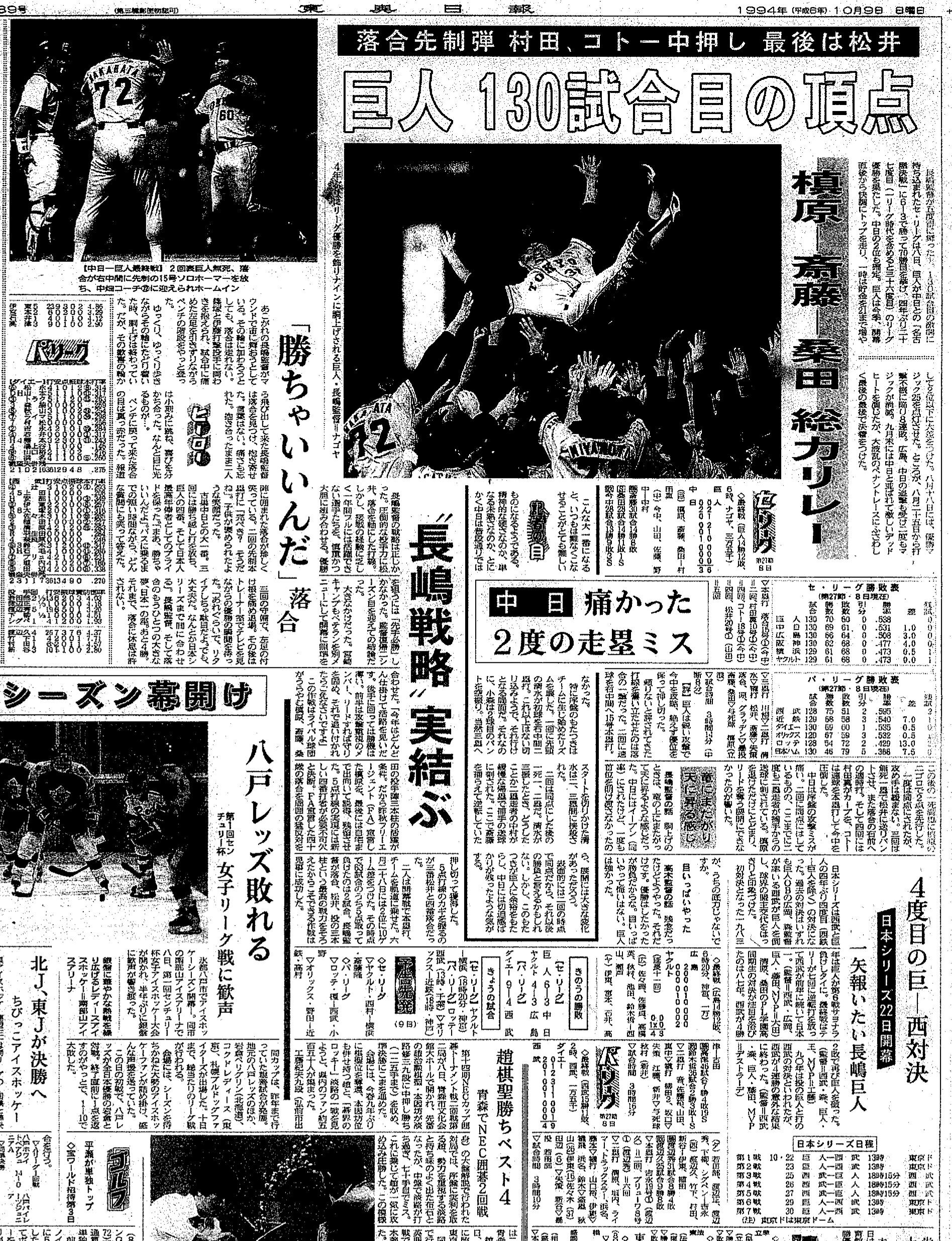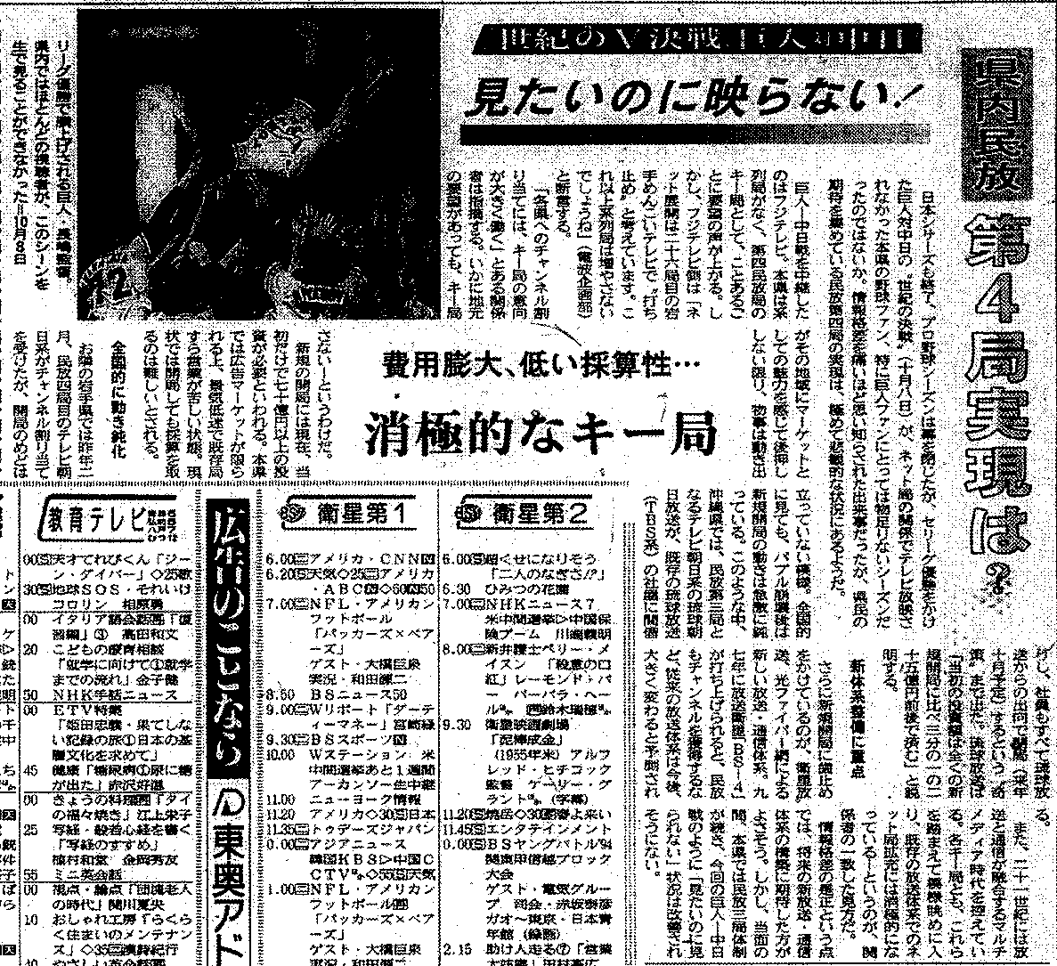 ¡¡1994ǯ10·î8Æü¤Î¥»¡¦¥ê¡¼¥°ºÇ½ªÀï¡¡ÃæÆü¡ßµð¿Í¤òÊüÁ÷¤·¤¿¤Î¤Ï¡¢¥Õ¥¸¥Æ¥ì¥Ó¥¸¥ç¥ó·ÏÎó¤À¤Ã¤¿¤«¤é¤Ç¤¢¤ë¡£