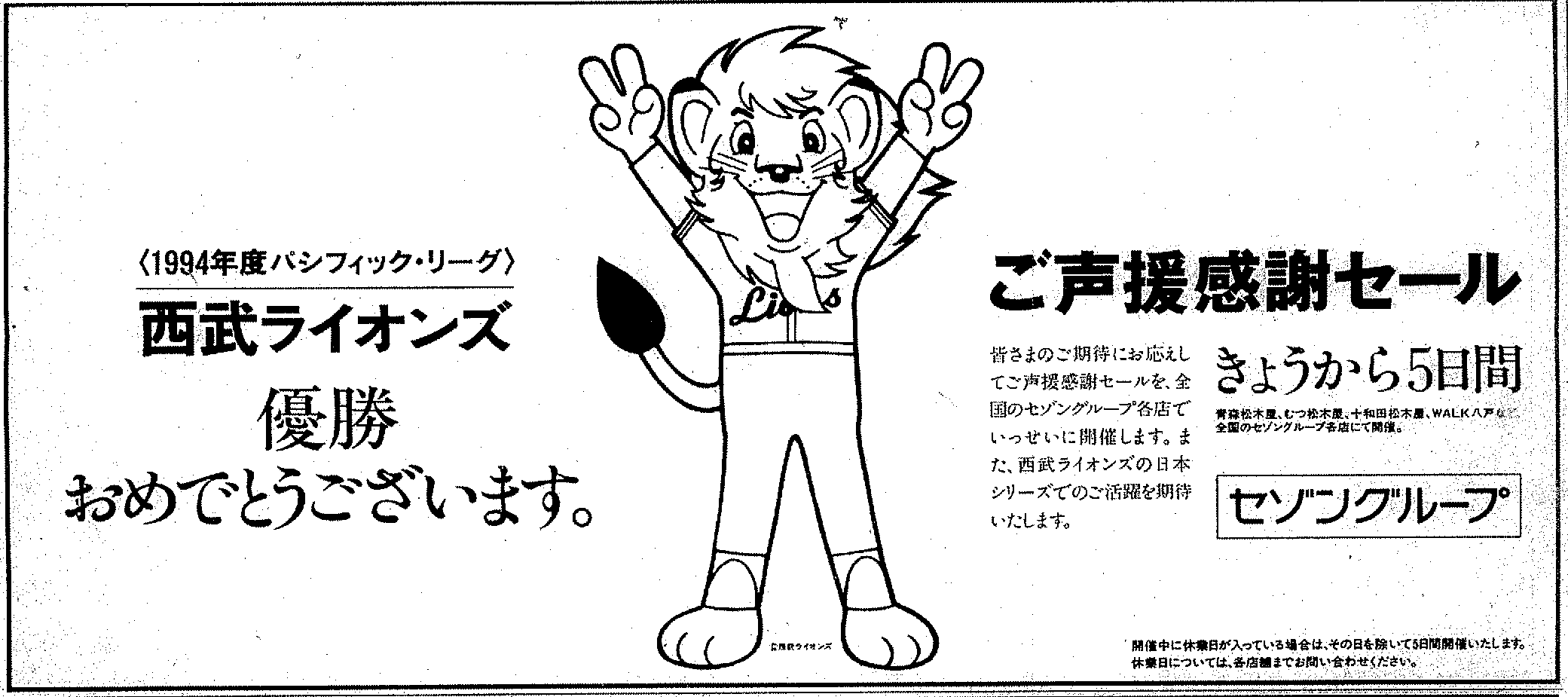 ¡¡1990ǯÂå¡¢ÀÄ¿¹»Ô¤Î¥Ç¥Ñ¡¼¥È¤Ïµð¿Í¤¬Í¥¾¡¤¹¤ì¤ÐÃæ»°¥Ç¥Ñ¡¼¥È¡¢¥ä¥¯¥ë¥È¤¬Í¥¾¡¤¹¤ì¤Ð¥«¥ÍĹÉðÅÄ(¥Ó¥Ö¥ì)¤¬Í¥¾¡¼Õ²¸¥»¡¼¥ë¤ò¼Â»Ü¤·¤Æ¤¤¤¿¤¬¡¢¥»¡¦¥ê¡¼¥°¤¬µð¿Í¡¦¥ä¥¯¥ë¥È¤Î2¶¯»þÂå¤À¤Ã¤¿¤Î¤ËÂФ·¡¢¾ï¾¡·³ÃĤÎÀ¾Éð¤Î¤ª±¢¤Ç¾¾ÌÚ²°¤Ë¤ÏËèǯ¤Î¤è¤¦¤Ë¼Õ²¸¥»¡¼¥ë¤Ë½Ð¤«¤±¤Æ¤¤¤¿µ²±¤â¤¢¤ë¡£