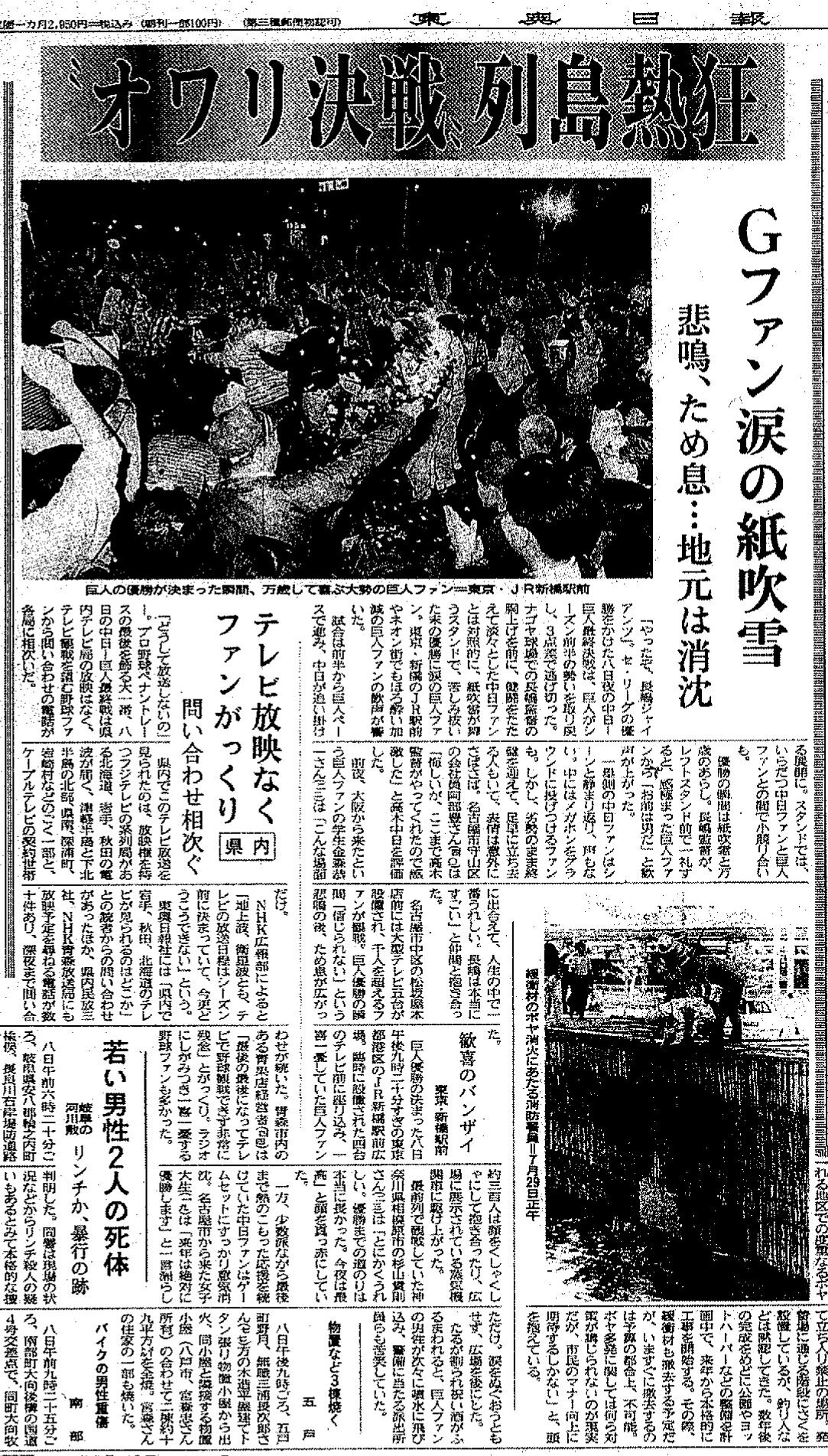¡¡ÃæÆü¡ßµð¿Í10.8·èÀ狼¤é10Æü·Ð¤Ã¤¿1994ǯ10·î18Æü¤ÎÅì±üÆüÊóͼ´©¤ÎÆÉ½ñÅê½ñÍó¤ÎÌÀ¶ÀÍó¤Ë¡¢¹°Á°»Ô¤ÎÃËÀ¤«¤é¡Ö¸«¤¿¤«¤Ã¤¿µð¿Í¡ÝÃæÆüÀï¡×¤È¤¤¤¦Åê¹Æ¤¬·ÇºÜ¤µ¤ì¤¿¡£
