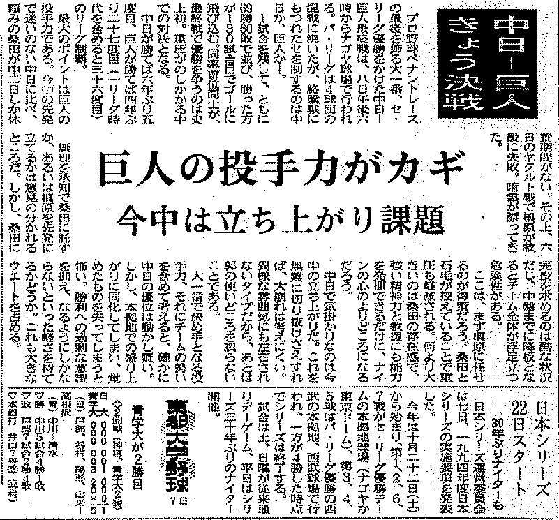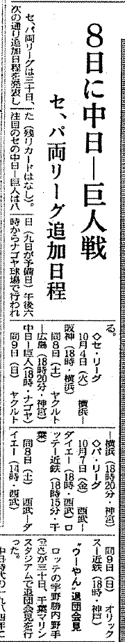 ¡¡9·î30Æü¤Ï¥×¥íÌîµå¤Î»î¹ç¤¬Ìµ¤¯¡¢Æ±Î¨¼ó°Ì¤Ç·Þ¤¨¤¿10·î1Æü¤ÎÅì±üÆüÊó¤Ï¡Ö8Æü¤ËÃæÆü¡Ýµð¿ÍÀï¡¡¥»¡¢¥Ñξ¥ê¡¼¥°ÄÉ²ÃÆüÄø¡×¤ÈÂꤹ¤ë¾®¤µ¤Êµ»ö¤òºÜ¤»¤¿¤Î¤ß¤Ç¤¢¤ë¡£