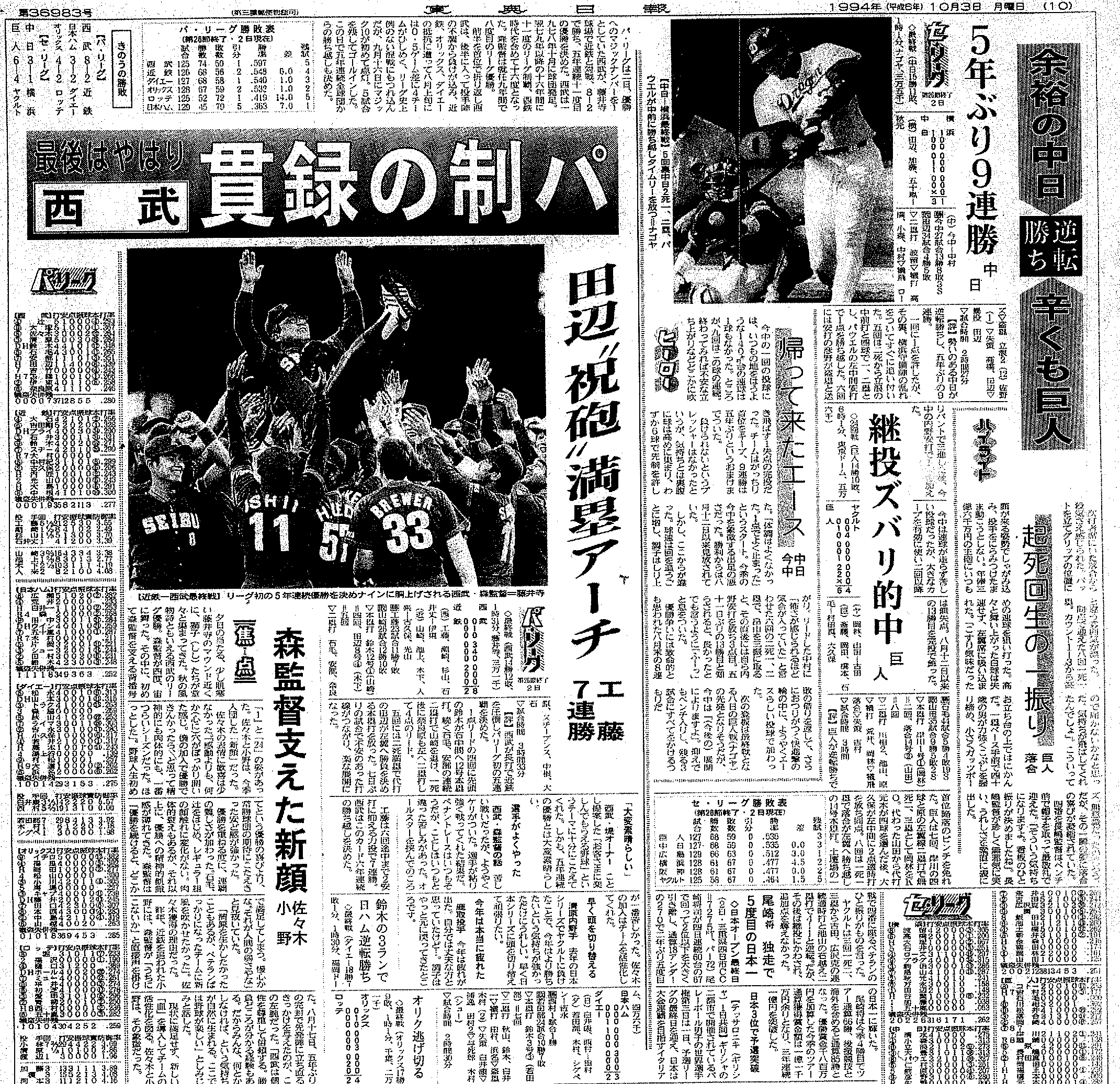 1994ǯ10·î7Æü¡¡µð¿Í¤¬É餱¤ÆÃæÆü¤¬¾¡¤Ã¤¿
