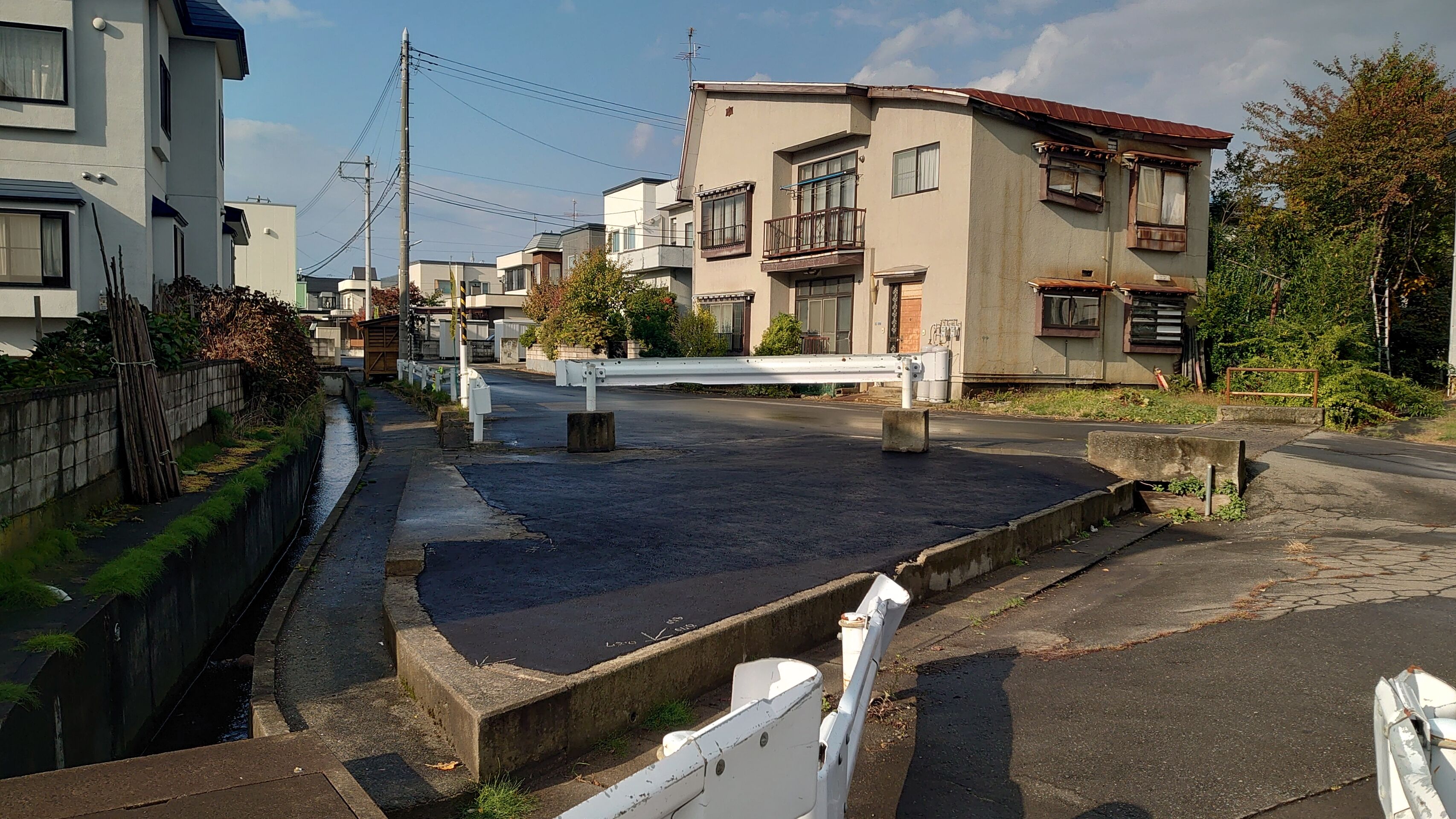 ¡¡ÀÄ¿¹ÅÔ»Ô·×²èÆ»3¡¦4¡¦4¹æ±üÌîȬ½ÅÅÄÀþ½ªÅÀ¤«¤éµ¯ÅÀ¦¤ò»£±Æ¤·¤¿¼Ì¿¿¤À¤¬¡¢¾®¤µ¤Ê¿åÏ©¤ò±Û¤¨¤¿Àè¤Î¥¬¡¼¥É¥ì¡¼¥ë¤Ç°Ï¤Þ¤ì¤¿»°³Ñ·Á¾õ¤Î¶õ¤ÃϤϳξڤ³¤½¤Ê¤¤¤¬Æ»Ï©ÍÑÃϤäݤ¤µ¤¤¬¤¹¤ë¡£